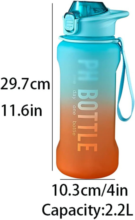 این بطری از مواد با کیفیت بالا ساخته شده و برای استفاده در سفر، باشگاه، ورزش یا هنگام پیادهروی بسیار مناسب است. ظرفیت بالای ۲.۲ لیتری آن، امکان تامین آب کافی برای فعالیتهای طولانی را فراهم میکند و به شما این امکان را میدهد که نیازی به پر کردن مکرر بطری نداشته باشید.